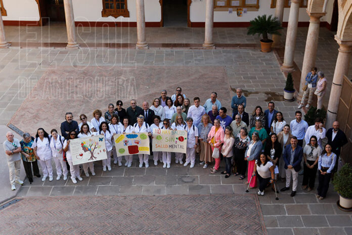 Antequera conmemora el Día Mundial de la Salud Mental con la lectura de un manifiesto en el patio del Ayuntamiento y el encendido en verde de sus monumentos, pidiendo más medios para atender a las personas con problemas de salud mental.