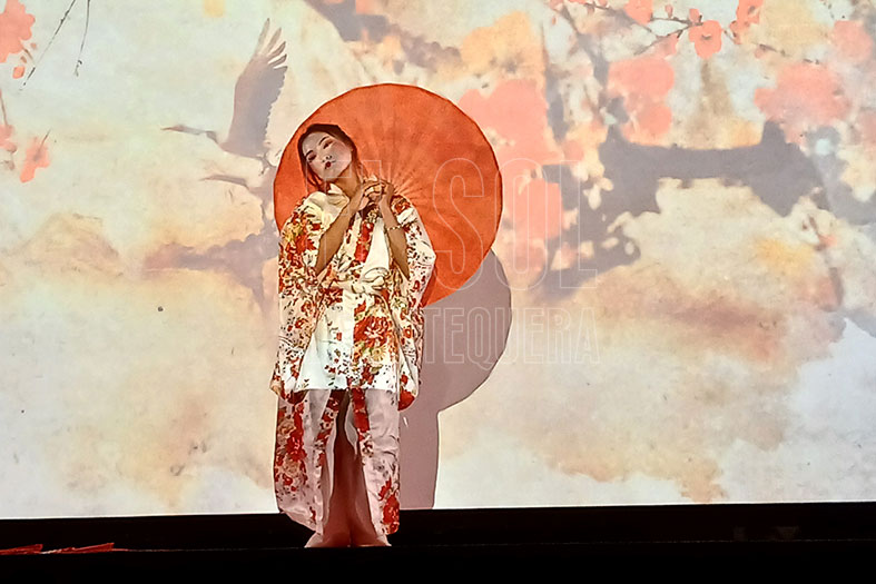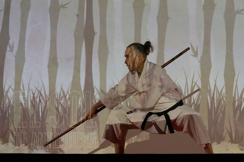 El Ayuntamiento de Antequera se transforma en un lugar exótico con “Sol Naciente”. Quienes visiten el patio consistorial se trasladan al antiguo Japón. Una pantalla de proyección en medio de la escenografía pétrea del patio proporciona el lienzo sobre el que distintas proyecciones permitirán una coreografía coordinada con un luchador real de artes marciales y rematada por una bailarina caracterizada como Geisha que con sus sutiles movimientos, y apoyada en emotivas y coloridas imágenes sugerentes.