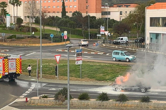 Todo apunta a que el conductor del coche notara algún fallo cuando iba en el carril derecho de la carretera del Polígono, por lo que lo detuvo, se salió y empezó a arder el coche. Primero intentaron sofocar el fuego con unos extintores y más tarde se apagó al personarse Guardia Civil, Policía Nacional y los Bomberos.