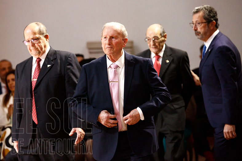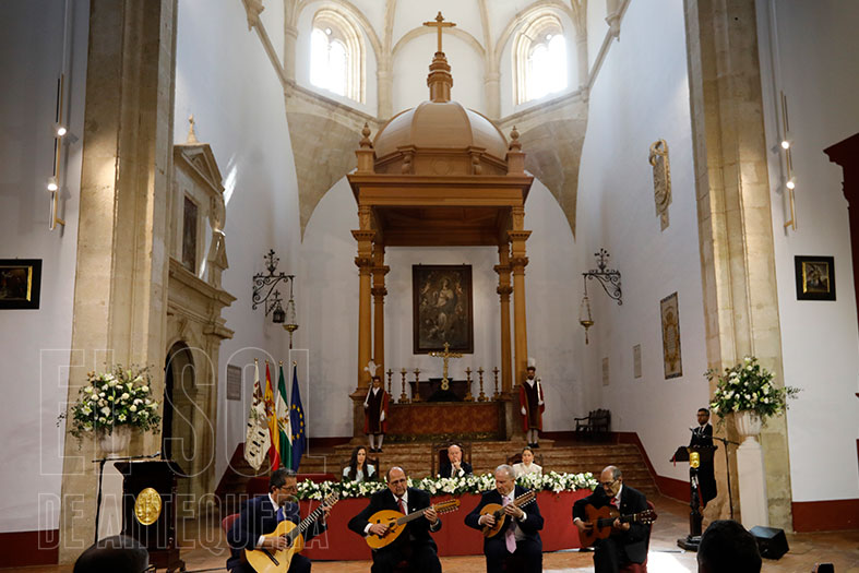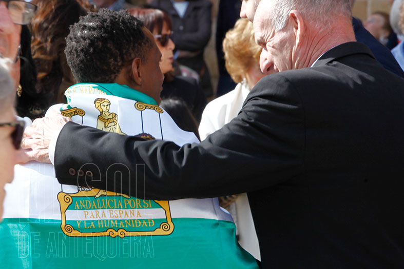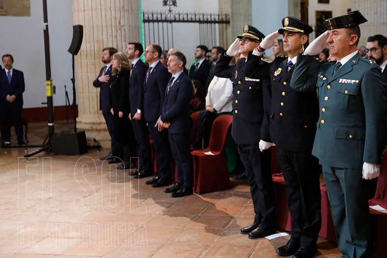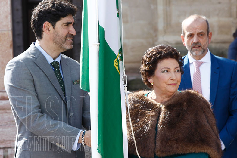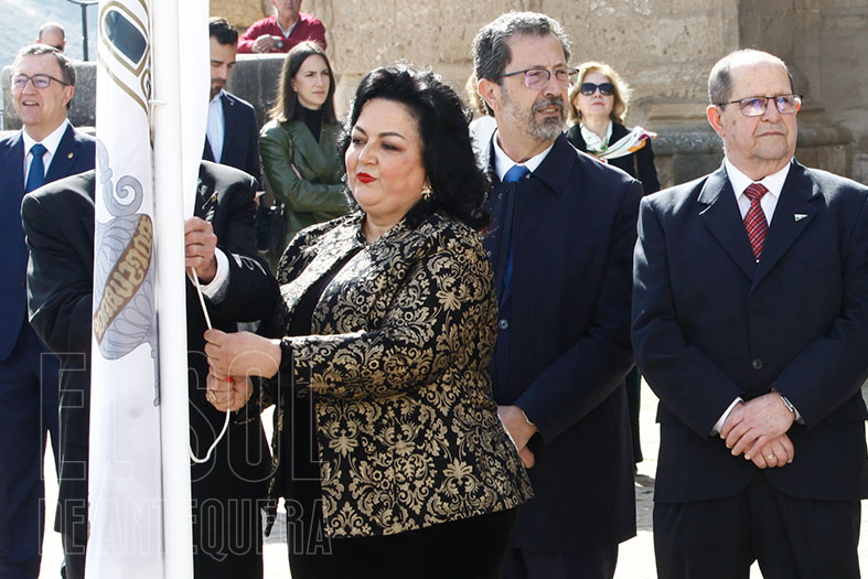 Así, a las 11,30 horas en una mañana soleada (en contraste con la lluviosa de hace un año) se izaron las banderas de Europa, España, Andalucía y Antequera por parte de los galardonados, mientras se interpretaban por megafonía los himnos de Andalucía y España.