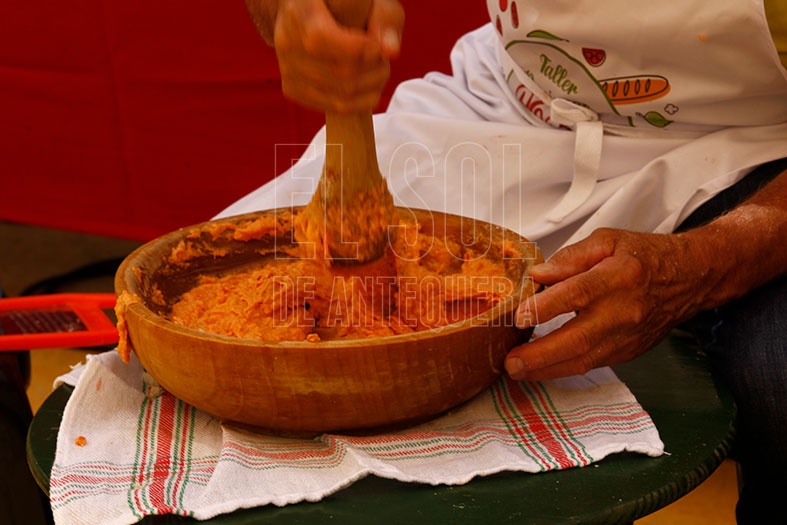 Clase práctica en la Feria de cómo hacer a mano la porra de Antequera