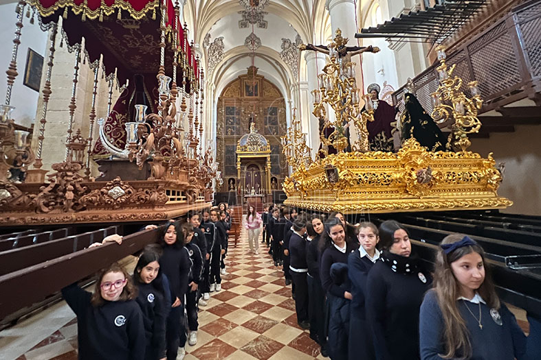 Semana intensa en las sedes de las cofradías de Antequera donde han recibido a lo largo de la semana la visita de varias clases de diferentes centros educativos para conocer de cerca el montaje de los tronos antes de Semana Santa.