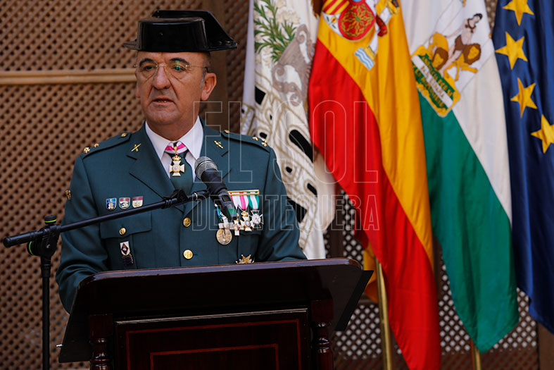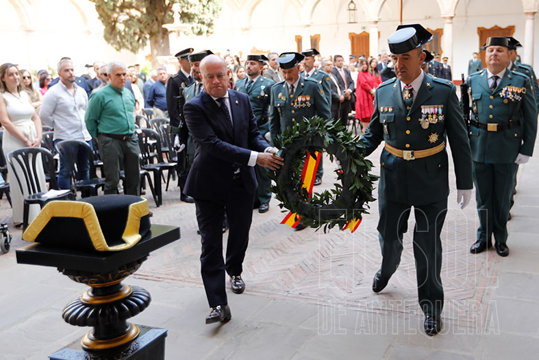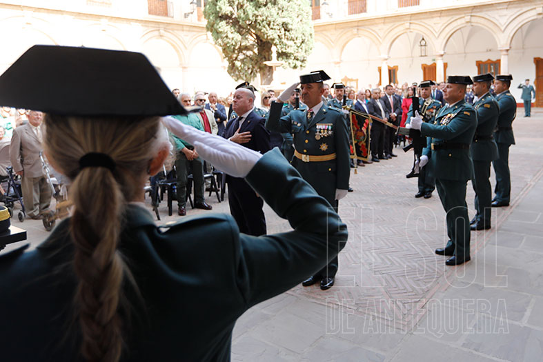 Quiso destacar «dos ejes, el Homenaje a los que dieron su vida por España y el reconocimiento a los hombres y mujeres de la Guardia Civil que prestan sus servicios a la ciudadanía en la Comarca de Antequera. A día de hoy hay dos actos militares, que aún los siento como el primer día que los viví y me provocan una intensa emoción por su significado, sencillez y solemnidad, que son el izado o la incorporación de nuestra bandera nacional a la formación y el homenaje a los que dieron su vida por España».