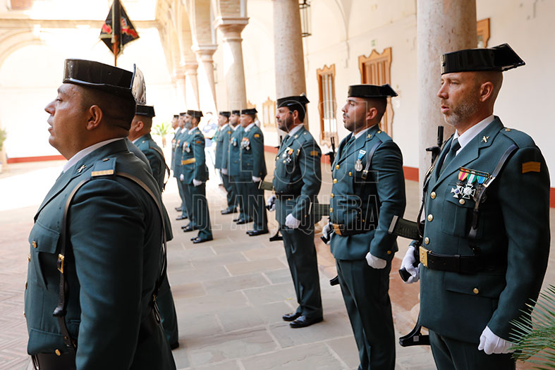 Seguidamente se desplazaron al patio del Ayuntamiento, donde se desarrolló el acto institucional. El guardia civil Manuel Soto Sayago condujo el acto que tuvo izado de bandera, entrega de distinciones y homenaje a los caídos del cuerpo.