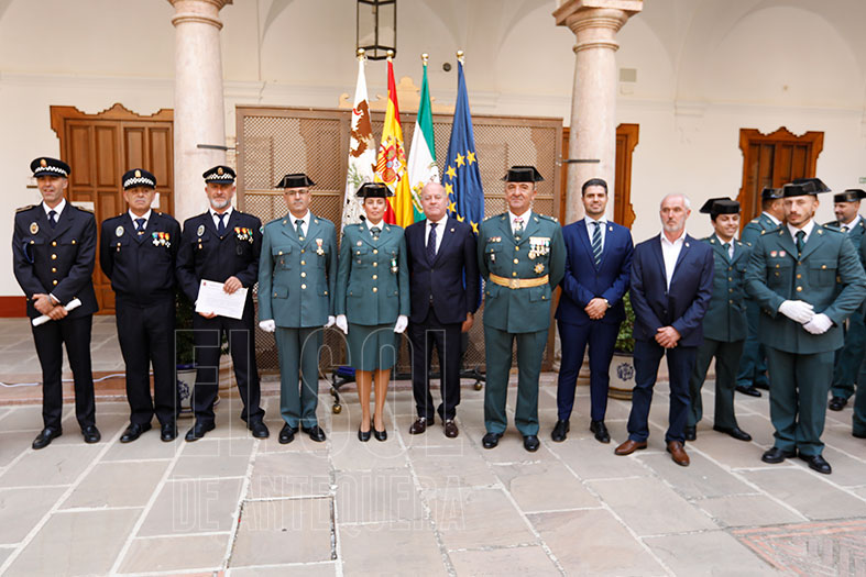 La entrega de distinciones y reconocimientos, contó este año con los guardias civiles Manuel Sánchez, condecorado con la Cruz del Mérito Militar con distintivo blanco y la Cruz a la Constancia en el Servicio; y Pilar Puerto, distinguida con la Cruz con distintivo blanco de la Orden del Mérito de la Guardia Civil. Además, se entregaron felicitaciones personales a los agentes de la Policía Local Juan Antonio Ríos y Antonio Jesús Martín (Fuente de Piedra), así como a Rafael Mesa (Villanueva de Tapia).
