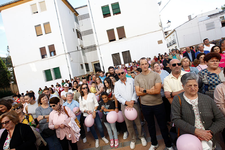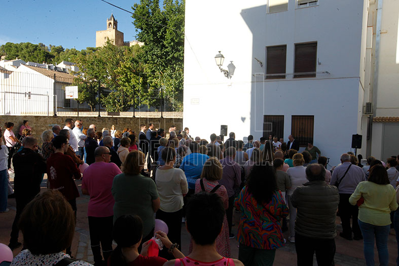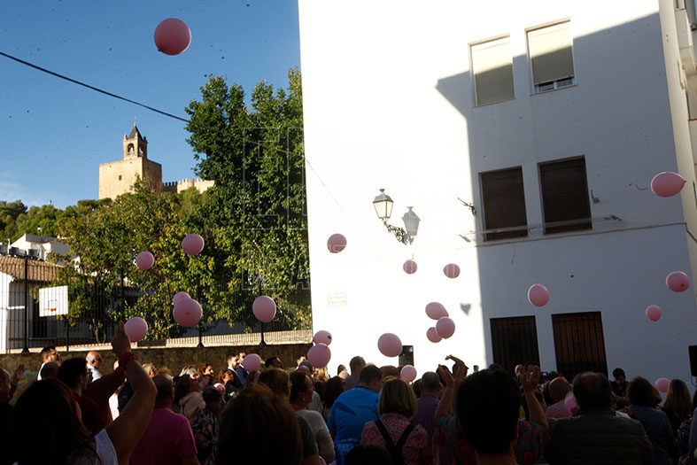 Luego se descorrió la cortina que guardaba su nombre con una fuerte ovación. Se terminó el acto leyendo un manifiesto de la Asociación Antequera por las Mujeres Mastectomizadas (AAMM) por el Día Mundial del Cáncer de Mama. Cristóbal y David Naranjo quisieron sumarse al homenaje, cantando una canción, a cuyo término se lanzaron globos rosas al cielo.