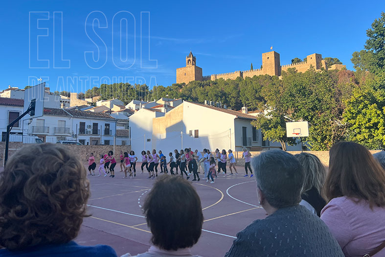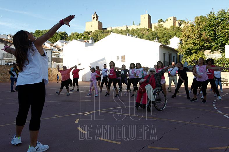 Y tras una fotografía de recuerdo, Raquel Claros y su grupo de zumba realizaron una exhibición de baile en la pista polideportiva. Puede que alguien pensara qué tenía que ver esta música ese día… pues se pudo comprender enseguida. Carmen querría terminar así este día, porque ella también quiso haber bailado entre nosotros a Karol G con «Si Antes Te Hubiera Conocido».