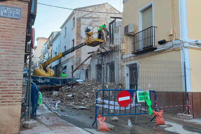 La casa en ruinas de calle Estrella se está derribando por parte del Ayuntamiento de Antequera, por lo que en breve se reabrirá la calle y podrán a volver a sus viviendas, las dos familias afectadas además de la que vivía en ella.