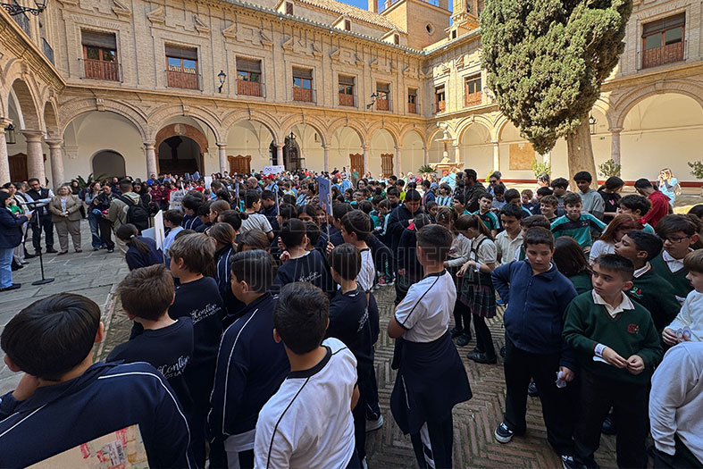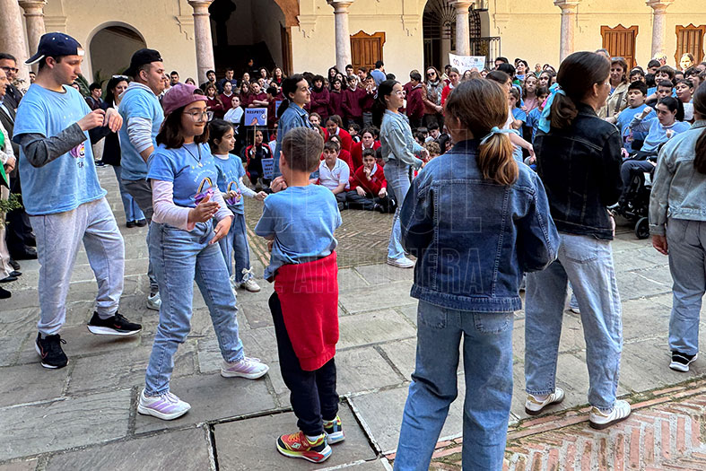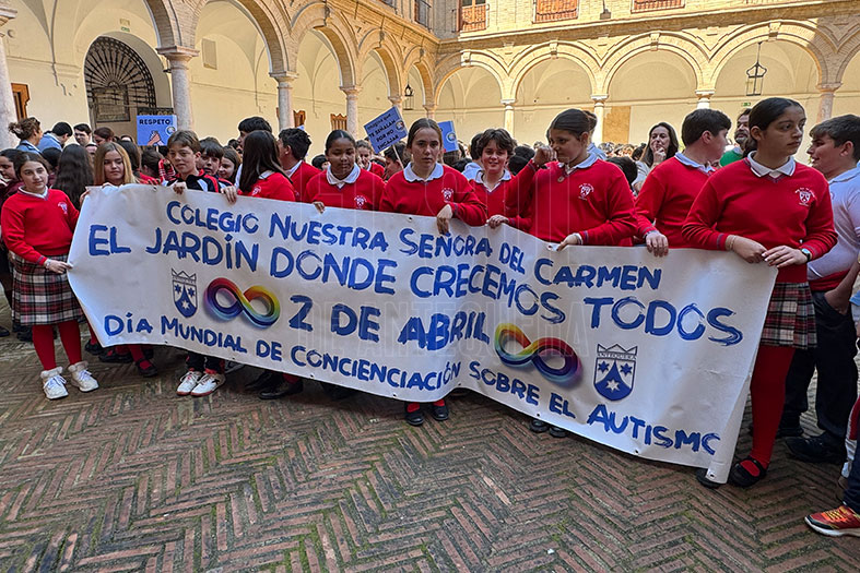 El patio del Ayuntamiento de Antequera ha acogido este miércoles 25 de marzo la celebración del Día Mundial de Concienciación sobre el Autismo, ante la coincidencia de su fecha de celebración el próximo 2 de abril, Jueves Santo.