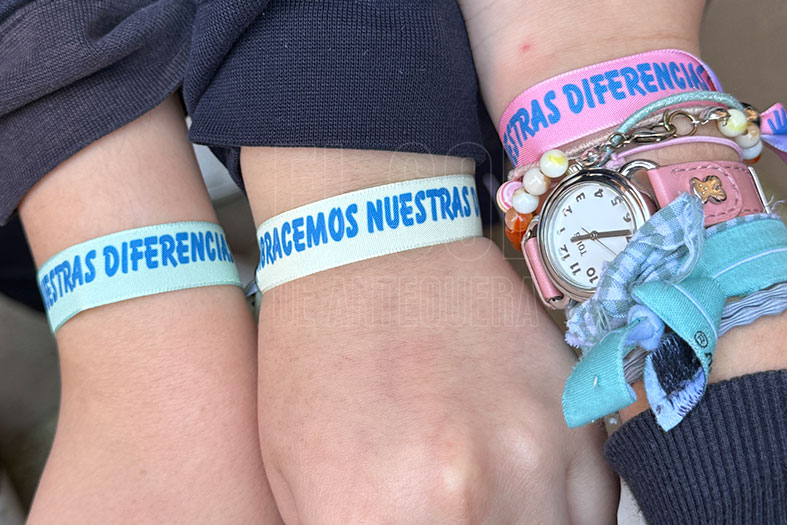 Al finalizar el acto se realizaron fotografías de recuerdo donde se podían ver los distintos lemas y carteles que portaban los alumnos de los colegios e institutos, así como desde la Asociación se repartieron pulseras con el lema: «Abracemos nuestras diferencias».