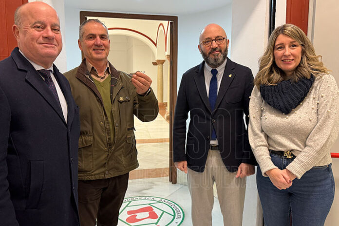 El alcalde Manuel Barón, acompañado por la teniente de alcalde de Obras, Teresa Molina y el concejal de Cultura, José Medina, han realizado la entrega simbólica de las llaves del edificio al presidente de AFA, José Díez de los Ríos, este miércoles 13 de enero.