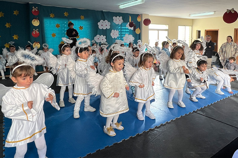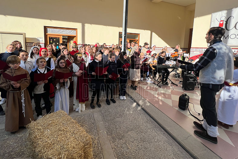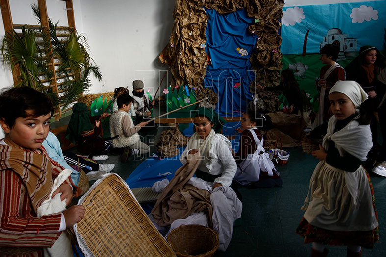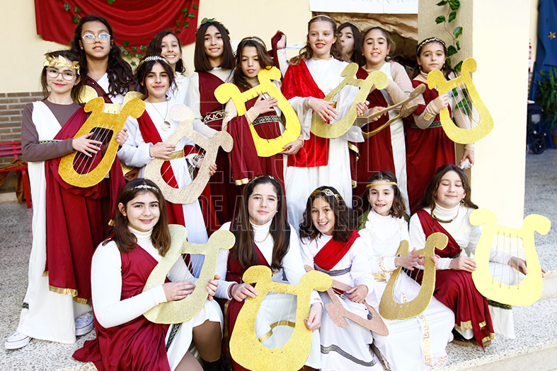 Y el Belén, con la Sagrada familia, pastores, y para rematar la visita, el coro del colegio con villancicos que acompañan la visita con las voces de los alumnos y los instrumentos que dan un plus al sonido de ambiente.