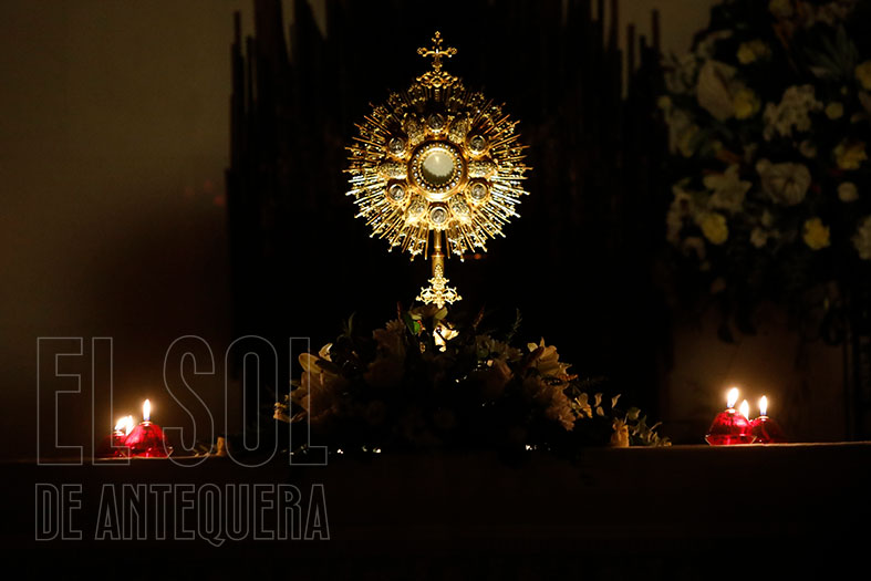 Fue cuando un sacerdote expuso al Señor en una Custodia y se apagaron las luces de la iglesia. Primera canción y un templo que tuvo que dejar abiertas las puertas del fondo porque no se cabía ni en los bancos, ni en los pasillos ni en la entrada.