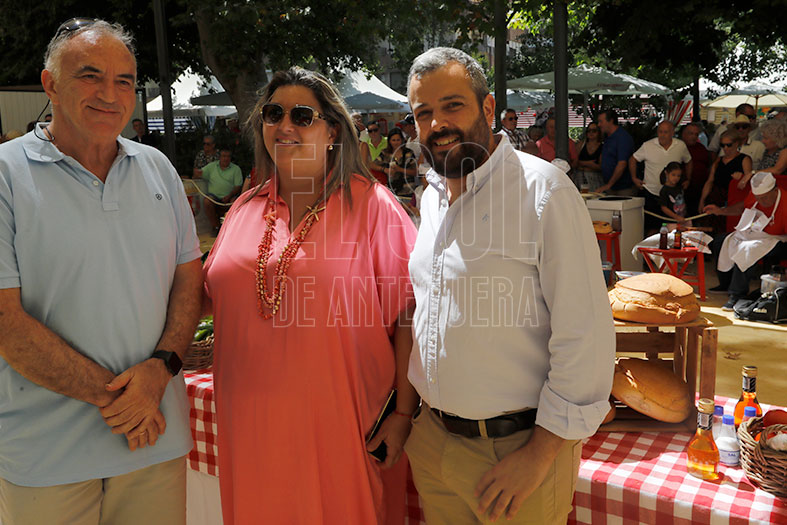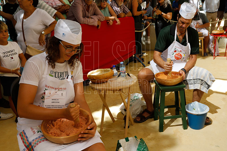 Así, desde las 11 de la mañana, tuvieron dos horas y media para hacer a mano la Porra de Antequera, con una porra o mazo dentro del dornillo, el recipiente donde se majan o machacaban todos los ingredientes, amasando el pan, con los tomates, el pimiento y el ajo con agua, aceite, vinagre y sal.