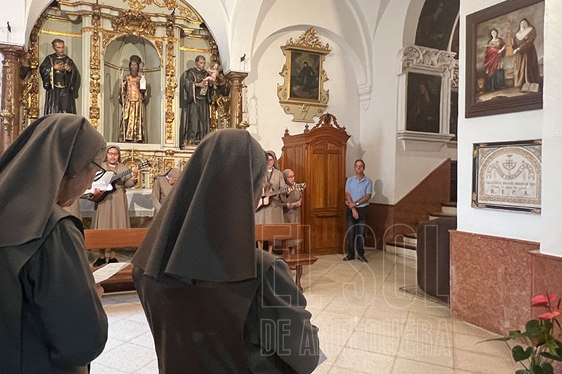 Allí fue colocado en la capilla de los Mínimos, encima de la tumba del padre de la Beata. Fue bendecido por el padre Francisco Aurioles y se terminó con el cántico “El amor a la verdad” de la Beata. Desde ahora, quienes entren al templo desde el patio de los Naranjos, se encontrarán con este lienzo que recoge el deseo de las dos santas relacionadas con Antequera. Y como marca la frase que da la bienvenida al templo: «Bendito sea Dios que tanto nos quiere».