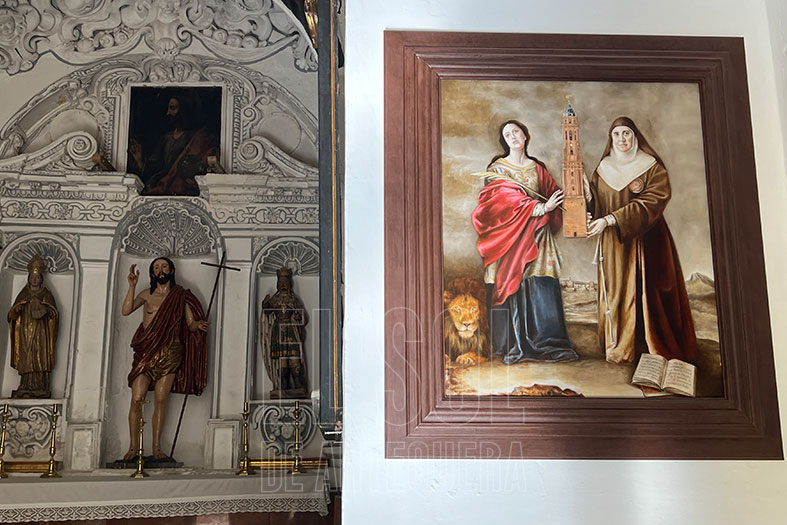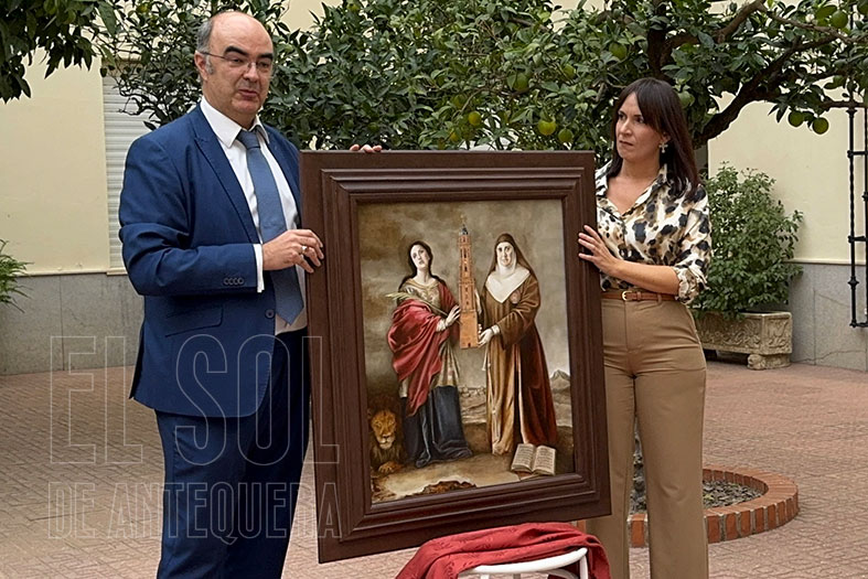 El cuadro de Eva Escobar sobre “La Santidad en Antequera: Santa Eufemia y Madre Carmen” ha sido donado, bendecido y colocado en el interior de la iglesia de La Victoria, en un acto íntimo en la tarde del miércoles 25 de septiembre.