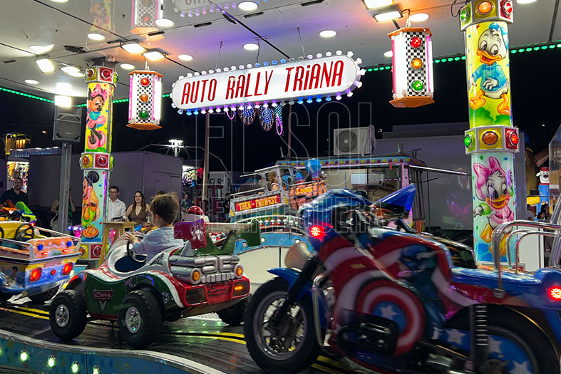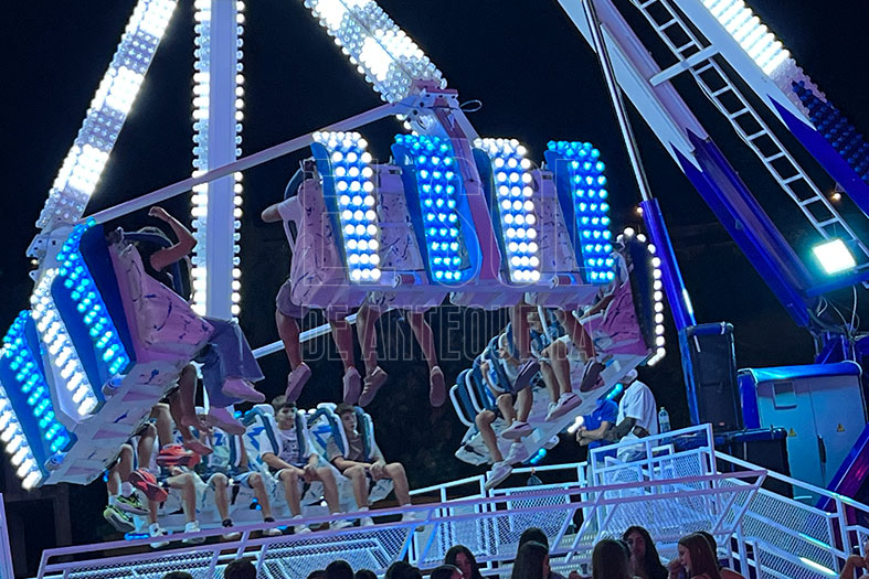 Luego las colchonetas, el saltamontes y las ofertas de movimiento donde te das cuenta que pasan los años. Y están los clásicos: Látigo García, Tren de la Bruja y los Coches de Choque.