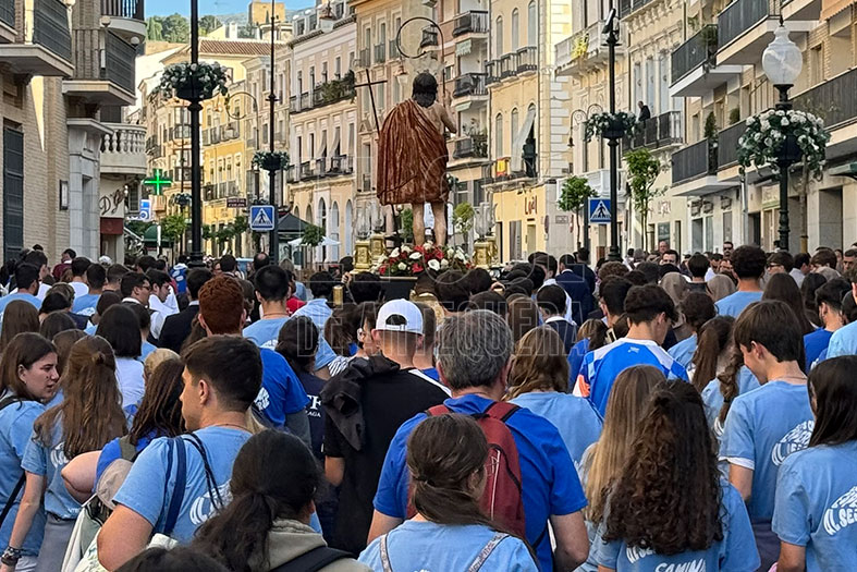 Jóvenes entre 16 y 33 años se dieron cita en el Colegio María Inmaculada sobre las 9 de la mañana, cuando tras la acogida y la oración inicial, los jóvenes salieron por las calles con la cruz y el icono hacia el Paseo Real, donde se celebrará la Eucaristía, presidida por el obispo de la Diócesis, Jesús Catalá.