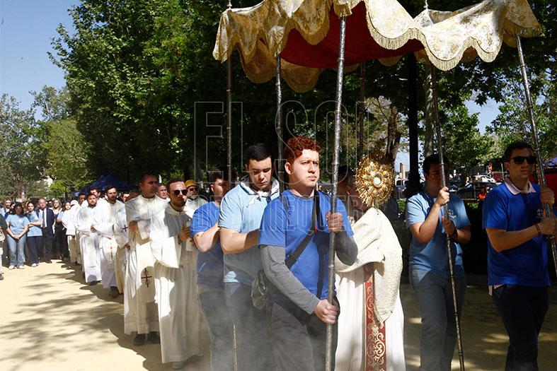 Tras la misa, se trasladó en solemne procesión a Jesús Sacramentado bajo palio hasta la iglesia del Colegio María Inmaculada donde quedó expuesto para la adoración durante los talleres.