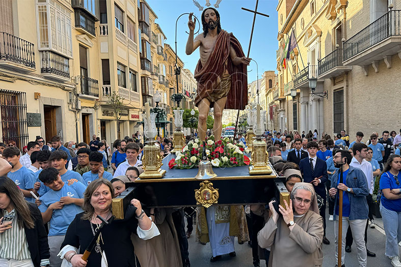 Por la tarde y como colofón del encuentro, sobre las 18,15 horas, la imagen del Resucitado (que no pudo salir por la lluvia) fue trasladado desde San Juan de Dios hasta La Victoria, en las andas del Señor de la Piedad y rezando un vía lucis por Infante don Fernando, San Sebastián, Encarnación, Descalzas, Carrera de Madre Carmen hasta llegar a la iglesia de La Victoria.