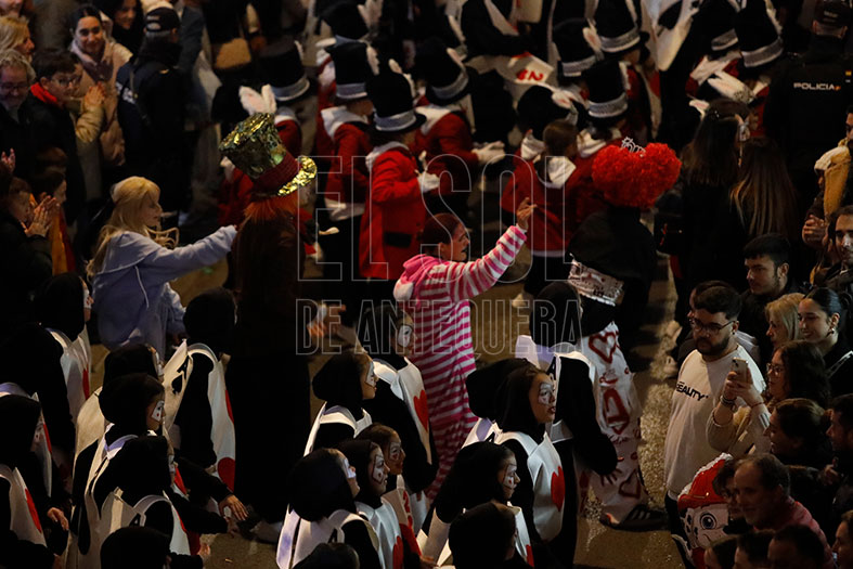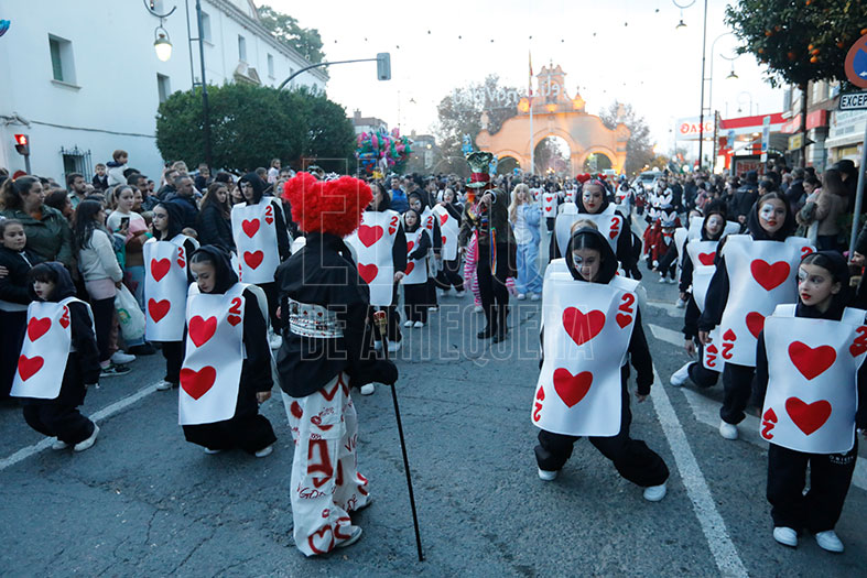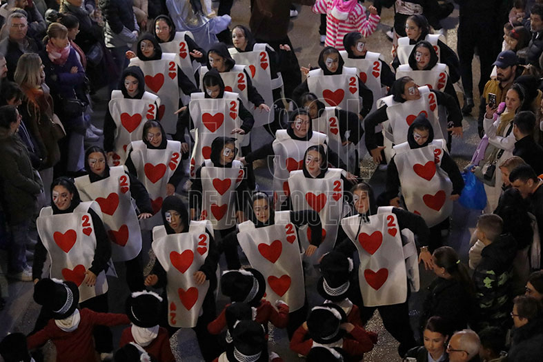 Este año, evocaban a Alicia en el País de las Maravillas, con sus personajes llenos de Alicia, el gato, el sombrerero, naipes o la Reina de Corazones. Dejaban al público boquiabierto. Primero, asombrados por su baile, luego girando la cabeza para seguir sus movimientos y por último, aplaudiendo sus coreografías. Marcaron el ritmo y son el grueso fuerte de la cabalgata.