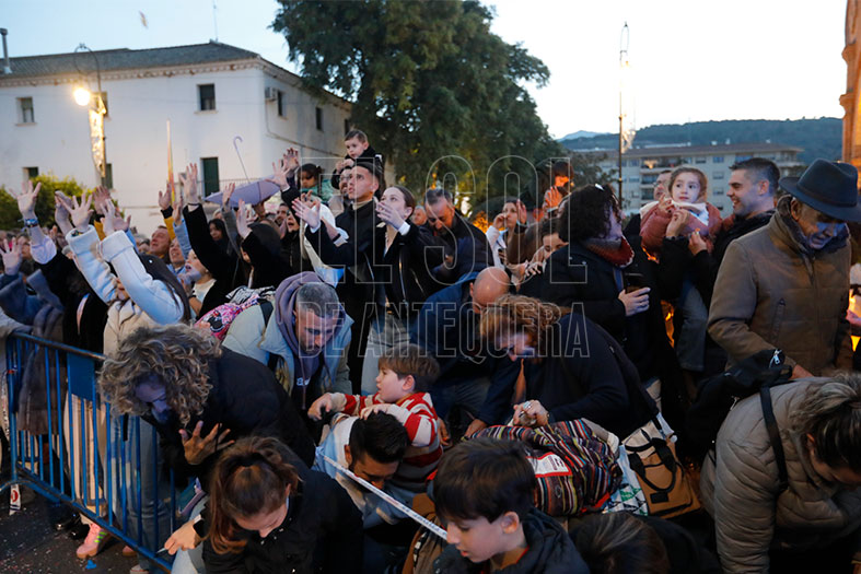Es el grito de guerra de la cabalgata, aunque lo que no se paró de lanzar fueron mantecados de Antequera. Tras la Puerta de Estepa, paso por la Alameda de Andalucía, Infante don Fernando, San Sebastián y Encarnación, con tramo sin ruido hasta el Coso Viejo. Luego Calzada, paso imposible por Diego Ponce, Cantareros, Alameda de Andalucía, Puerta de Estepa y Avenida Periodista Ángel Guerrero pasadas las 21,30 horas.