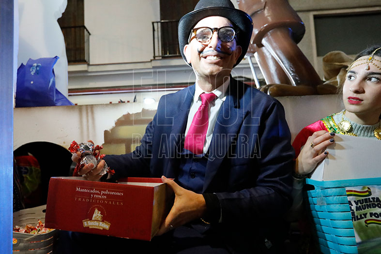En cuanto a la colaboración de empresas, este año, Horno El Antequerano aportó 4.000 molletes, así como 750 bolsas de picos AOVE y otras 750 de regañas AVOE. Grupo Sancho Melero, 2.080 kilos de mantecados. Torcadul, 320 kilos de mantecados. La Comanda, 800 unidades de recogecaramelos, unos recortables de cartón para recoger caramelos.