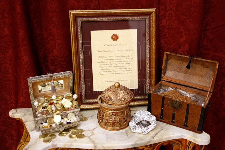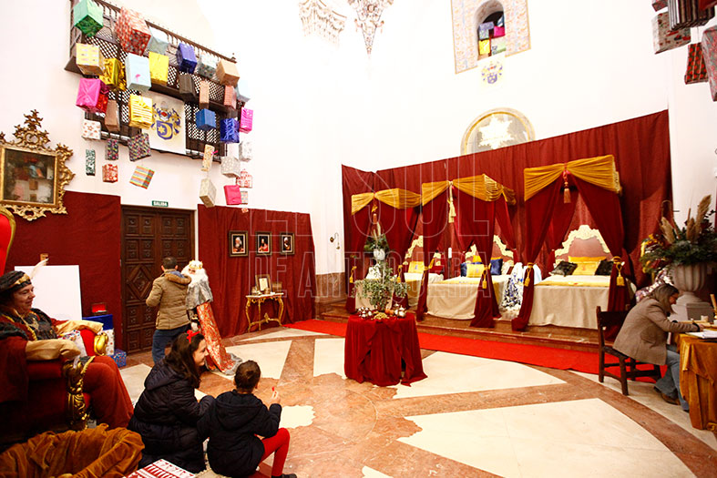 En una vitrina, el oro, el incienso y la mirra que depositarán ante el Niño Dios, así como un escritorio de recogida de firmas, tres retratos de los Reyes y piruletas para los más pequeños.