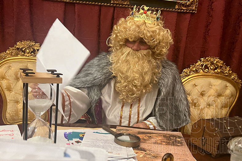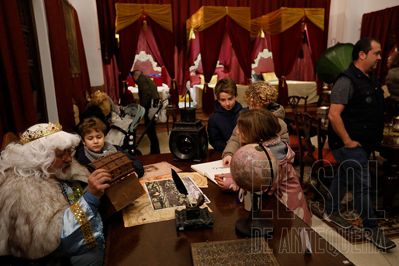 Allí, tras adentrarse en la esencia de la Navidad que el colectivo Noche de Paz consigue en el Belén, entran y se encuentran con el salón, despachos y dormitorios de Melchor, Gaspar y Baltasar. Para empezar, muebles de época con una selección de juguetes del ayer, el gran almacén de juguetes y… ¡no puede ser! Baltasar que les recibe y comparte la magia de Sus Majestades. Les pide que miren a ver si encuentran el paquete con su nombre y les cuenta la historia desde que salieron de Oriente. Y ante la admiración de los niños, les lleva a que entren y suban hasta sus propios aposentos. Los más atrevidos hasta se suben a sus camas.