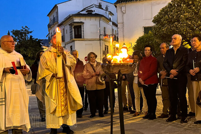 Antequera llega al punto álgido de la Semana Santa con la Vigilia Pascual, la celebración de la victoria de la vida sobre la muerte, concluyendo el Triduo Pascual.