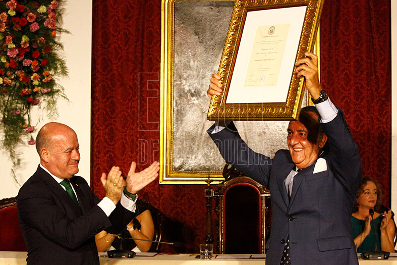 Puso a todo el patio de pie que cantó con él el popular tema. Sin más, el alcalde Manuel Barón se fundió en un abrazo y le entregó una reproducción del Infante don Fernando al pregonero. Felicitaciones, foto de familia y al carrusel de la feria. Sólo le faltó que lo sacaran a hombros por la puerta grande del Ayuntamiento porque hizo un pregón de orejas y rabo… Compartió sus vivencias con la chispa de querer vivir y tener a los seres queridos en el corazón pase lo que pase…