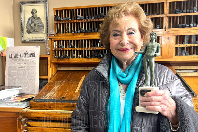Al quedar viuda, el doctor Jiménez Nieto le pidió que presidiera el Club de Leones, del que fue la primera mujer presidenta. Y Juan Espejo Fraile le pidió que le ayudara en la creación de Proyecto Hombre. Un Efebo que se lo dedica: “A mis padres, a mi hermano, a mi marido, a mis hijos, a mis nietos, al Club de Leones al Colegio de San Juan y cómo no, a Proyecto Humano”, nos comparte emocionada.