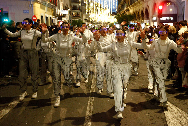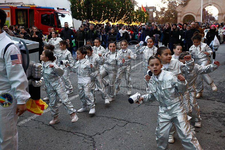 Pasa de magia de cuentos de hadas con carroza de princesa y el Rey Gaspar. Seguían grandes reproducciones de viaje espacial antes de cerrar el Rey Baltasar. Por último, vehículos de los Bomberos, ambulancias y resto de fuerzas de seguridad.