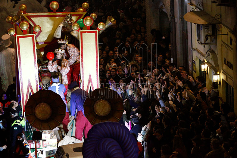 Antequera vivió una intensa Cabalgata de Reyes Magos en la que se apreció la visita de muchas personas de fuera, lo que demuestra el interés y atracción que ofrece un cortejo que además de a Melchor, Gaspar y Baltasar, reparte molletes, mantecados, muñecos Playmobil y muchos momentos para recordar.