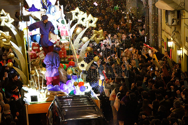 Entre los gritos de las aceras a Sus Majestades, al tradicional de «caramelos», se les sumó el de «molletes» y este año los de: «¡Playmobil, Playmobil!» y «¡pelota, pelota!», por los regalos que arrojaban desde las carrozas.