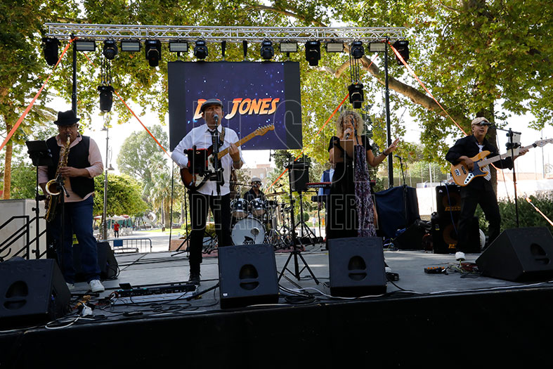 Además de la barra y la merienda con bienmesabe, hubo un escenario con los artistas ‘DJ Doublep’ que pinchó música de diferentes estilos, y los directos con versiones como ‘Funky Monster Band’, ‘Dr Jones’ y ‘Los Pacos’, un grupo referente en fiestas locales que despertó mucha expectación por no haber actuado esta pasada feria.