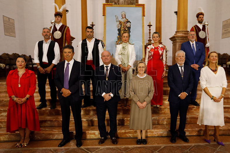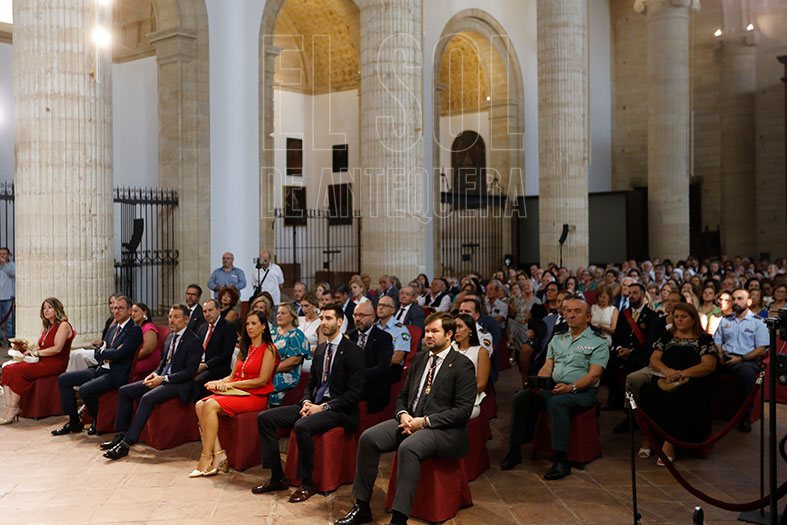 Junto a ellos, anteriores distinguidos, así como representantes de la Guardia Civil, la Policía Nacional y la Policía Local. Además de familiares y amigos. Tras la entrega de las distinciones, intervino el alcalde Manuel Barón, quien reconoció la labor de todos. “Antequera hoy vuelve a ser la madre de cada 16 de septiembre en el día de sus cumpleaños. Todos sois mimados, adorados, está enamorada de la ciudad, de todos vosotros, pero tiene especial predilección con personas e instituciones”. Seguidamente actuación de la panda de verdiales y cerró los himnos de Andalucía y de España.