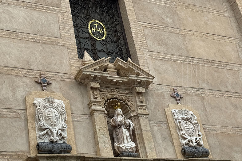 Medina Galeote, por su parte, detalló en qué han consistido estos trabajos en la fachada: limpieza mediante proyección de silicato de aluminio; eliminación manual de cementos y morteros inadecuados de intervenciones anteriores; reintegración de volúmenes con morteros de cal hidráulica natural; pigmentado de morteros y reintegración con pigmentos en base de silicato de potasio; desmontaje de sillares de zócalo, saneado de la superficie y recolocación de los sillares; realización de la corona de la Virgen con elementos dorados; realización de ráfaga de escudo de reja y dorado y limpieza de las farolas laterales y pintadas con esmalte sintético.