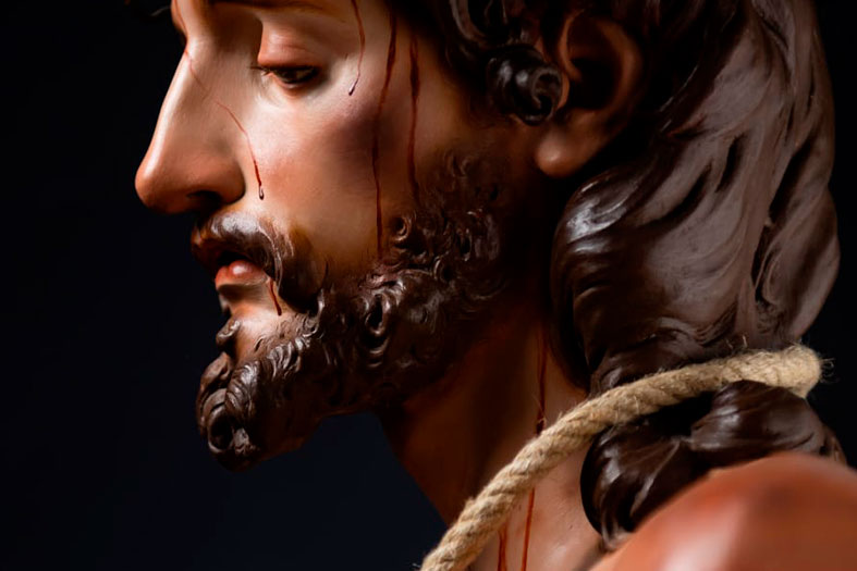Contemplando la imagen, nos recuerdas sus facciones al Nazareno de la Sangre. “Para mí es importante que tenga algo que trascienda, con rasgos como parte del rostro, y es cierto que tiene sus semejanzas como la zona del bigote del Nazareno”.