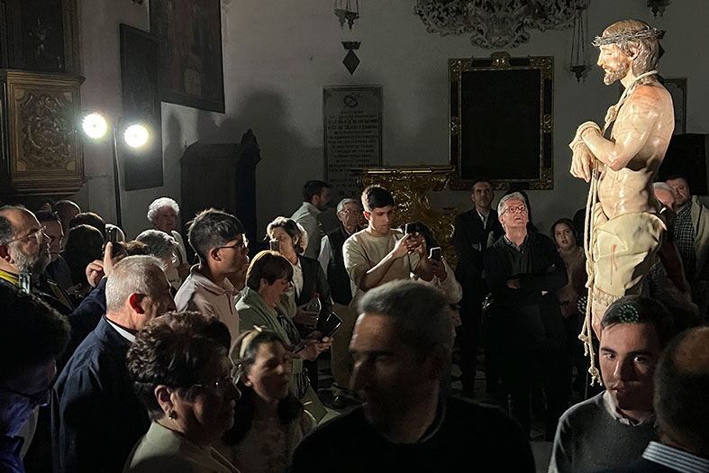 En una Cuaresma de 2023 tan barroca como sigue siendo Antequera, va Ángel Sarmiento Burgos y nos regala la presentación de su primera escultura a tamaño natural. Una imagen de la pasión del Señor de 1,80 metros de altura y realizada en cedro real. Modelada, tallada y policromada por él durante los últimos tres años. La presentó en la noche del viernes 24 en San Juan de Dios, bajo el título de “Cordero de Dios”, en lo que fue un acto para recordar.