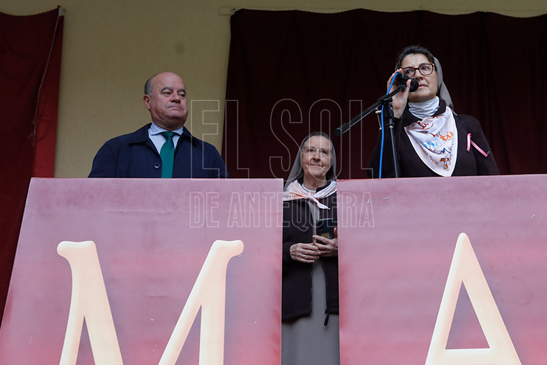 Para empezar, recogida de la mochila peregrina y palabras de recibimiento por parte del alcalde Manuel Barón y la Madre General Joaquina González. Luego, testimonios, baile y surge la figura de Madre Carmen que invita a recorrer los espacios de la ciudad relacionados con su vida.