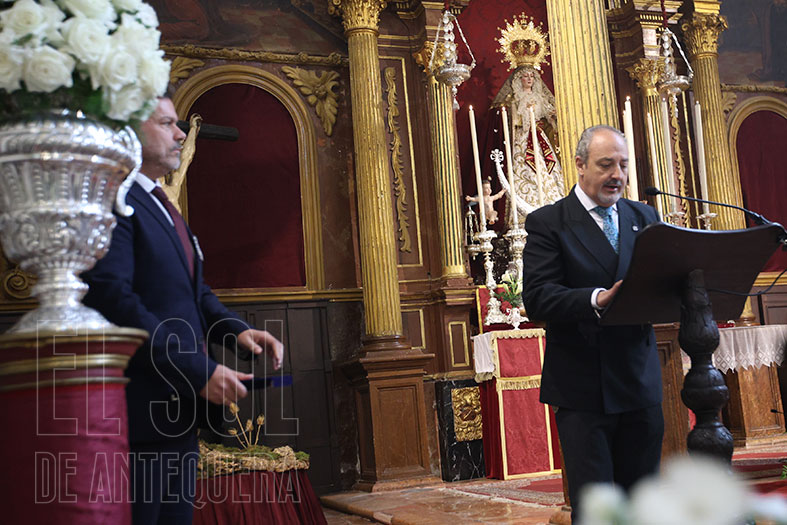 Pidió al artista, junto a los hermanos mayores del Rosario y del Consuelo que desvelaran la obra, ante la admiración y fuerte ovación del público que se puso en pie para alabar la gran fotografía de Raúl: la Virgen del Consuelo, preparada para el Jueves Santo, sobre su peana.