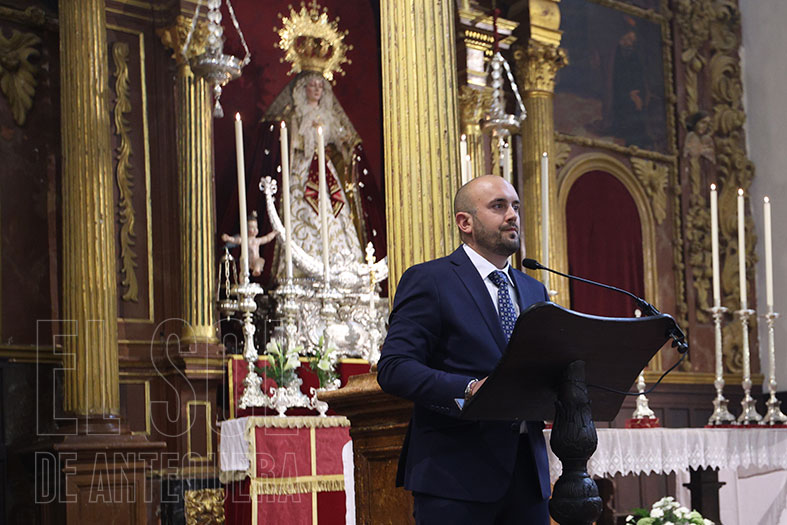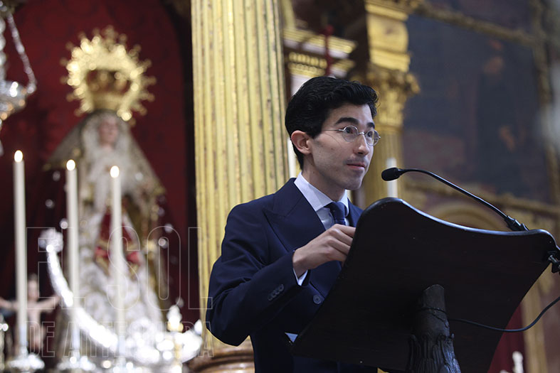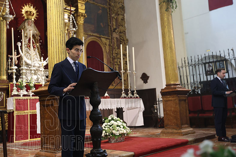Así comenzó con la llegada de la Virgen: «Del taller del prestigioso escultor Juan Bautista del Castillo aquel que se formara en Sevilla con Juan de Mesa, Montañés y Ocampo bajaba hoy un carro , en el carro, en el carro viene el amibar de los pinceles de un canto de letanías, que convierten carnaciones nacaradas y policromías».