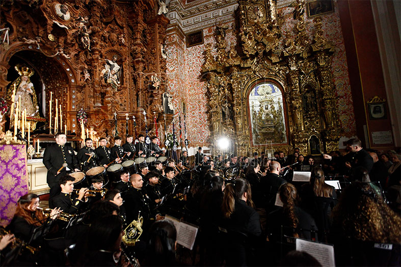 El cronista de la Agrupación, Félix Jiménez, condujo el acto, dando la bienvenida y presentando a la Banda de Mena de Málaga. Juan Manuel Parra dirigió a una de las bandas referentes de la capital, interpretando «Madre, tu dulce nombre», «Pasa la Soledad», «Mater Mea» y «Estrella sublime». Seguidamente, tras una fuerte ovación, la primera de la noche, el pregonero de 2020, el de 2021 y al fin el de 2022, Manuel García de la Vega, dio el relevo empezando las sensaciones de emoción al evocar el sueño de un niño que vio por primera vez pasar a la Virgen de la Soledad por el balcón de su casa.