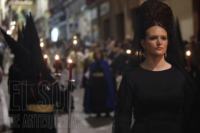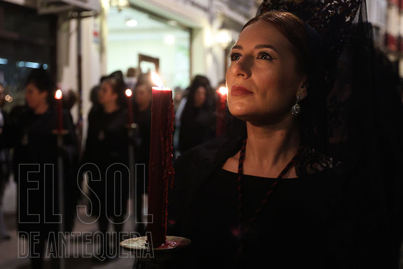 Devociones en forma de penitente, mantilla, hermanacos y personas anónimas en la noche legionaria del Mayor Dolor en Antequera