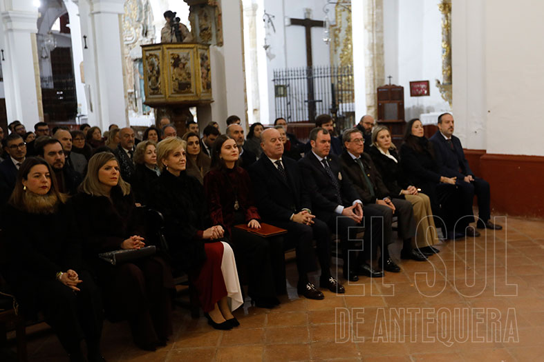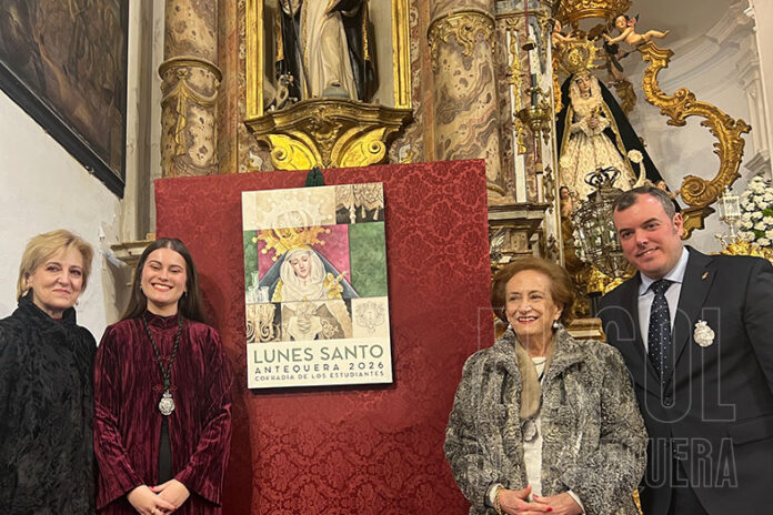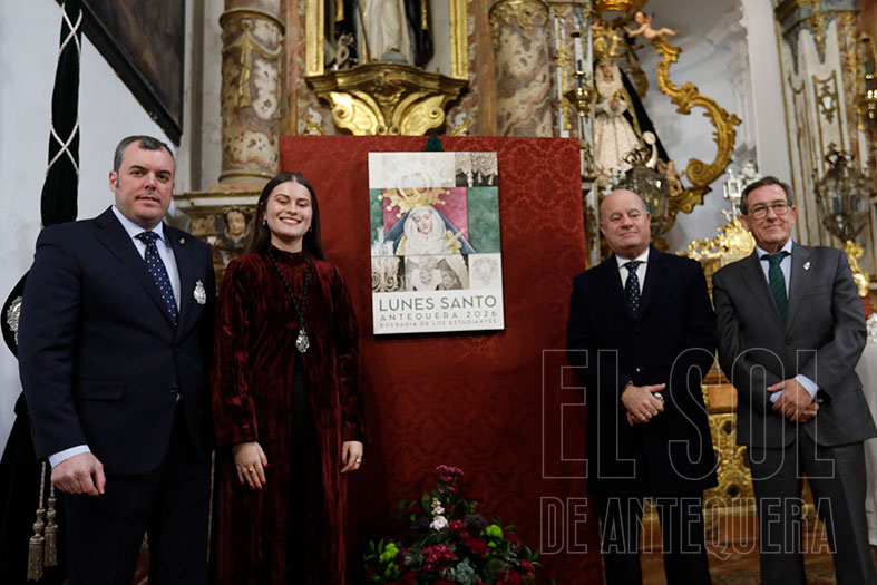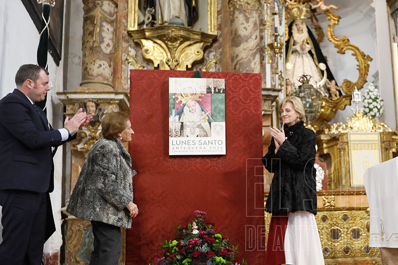 La Cofradía de los Estudiantes convocaba al acto donde María Victoria desvelaría la obra del artista de Campillos, Rafael Muñoz Granados. El temporal que azota las últimas semanas a Andalucía, imposibilitó que pudiera acercarse al acto el autor. Así, comenzó puntual a las 12,30 en punto. Acto dirigido por el vocal de Protocolo, José Pedro Alarcón González, quien dio la bienvenida y dio la palabra a María Victoria, compartiendo de ser el futuro más presente de la cofradía estudiante, quien desde el Lunes Santo de 2005, acompaña a su cofradía.