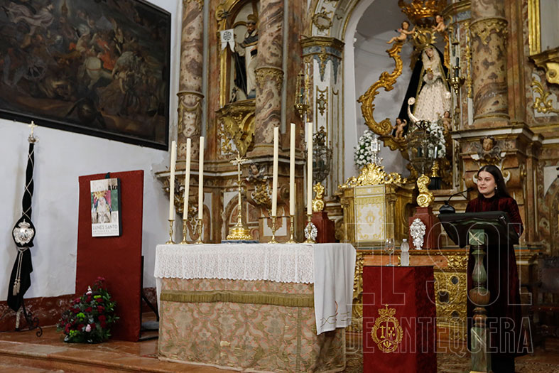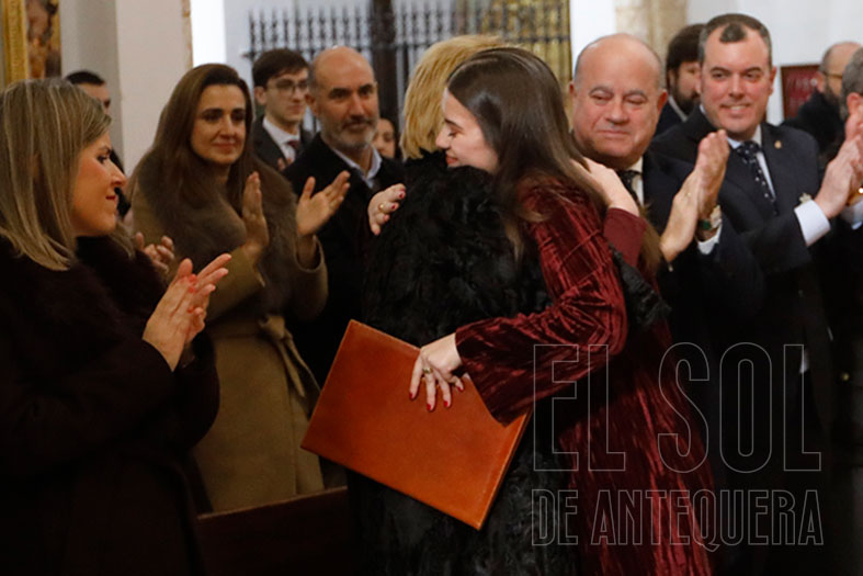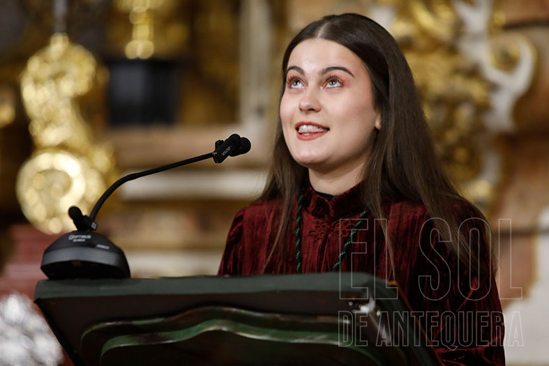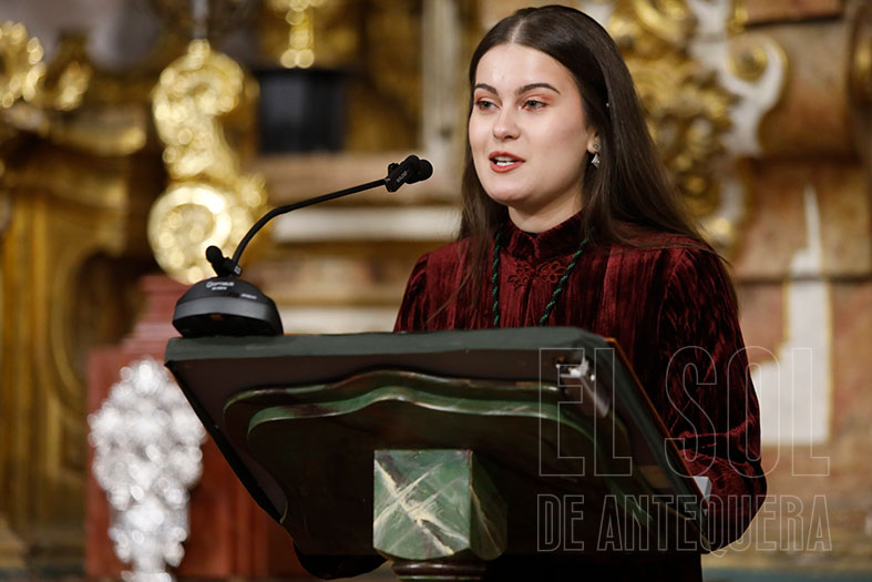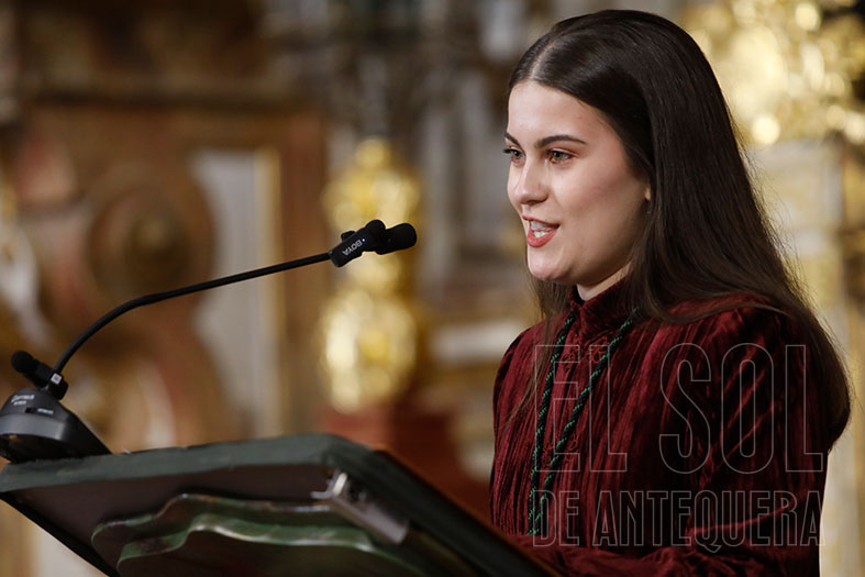Así empezó abriendo su corazón: “He crecido como cofrade y como cristiana, que no se nos olvide. Entré de la mano de mis padres y encontré a muchos miembros de mi familia, a amigos que también lo son y muchas personas que hoy en el día de esta presentación echo mucho de menos”.