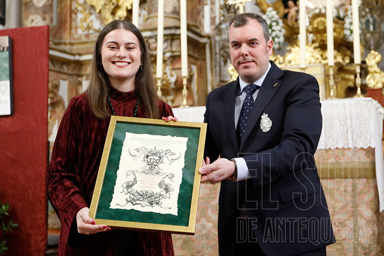Terminó con versos: “Nací sin saber el día y ya me esperaba Ella un Lunes Santo de cuna, con Banda Verde en el alma. San Francisco fue mi casa, mi refugio, palabra, donde aprendí a ser Estudiante de la verde fe que nunca acaba”. Emocionó al mostrar las virtudes del apellido ‘Barón’ de saber estar y pregonar a Antequera, pero también el de ‘Ortiz’ al sacar lo que el corazón sabe lo que es estar a la Vera de la Cruz. Fue muy aplaudida. El acto lo cerró el hermano mayor de la cofradía, obsequiándole con un cuadro y anunciándose los actos por venir.