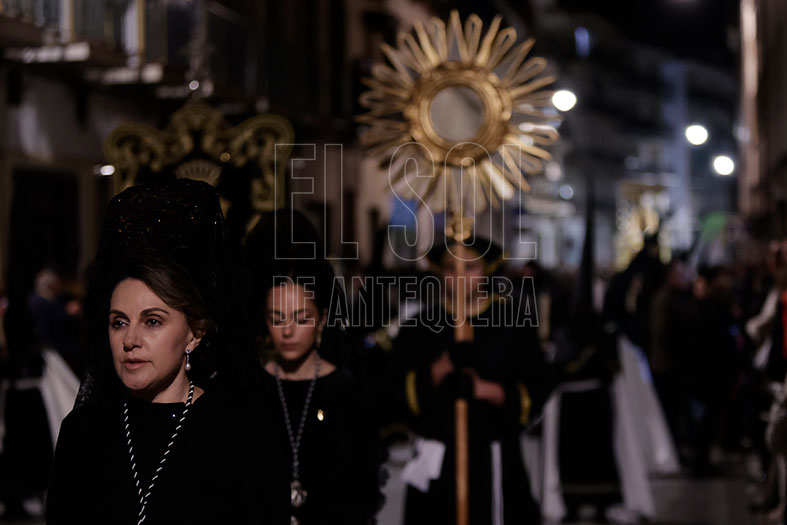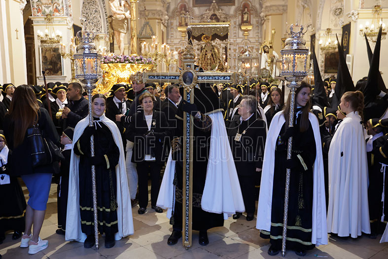La Virgen de los Dolores es Antequera. Hacía años que no se vivía una compenetración tan intensa del barrio y devotos con la Virgen de los Dolores. Basta ver cómo estaban llenas las calles y Santiago y la Carrera de Madre Carmen y Las Descalzas y cómo le aguardaban en su regreso.