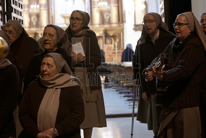 Paso por la iglesia de la Beata Madre Carmen. Rezo místico de las franciscanas al pasar cada una de las imágenes. Llegará el día en el que todas pasen por allí. Es ya el epicentro de la religiosidad local y del corazón de Andalucía. Pero a veces se va tarde en el mundo de las cofradías.